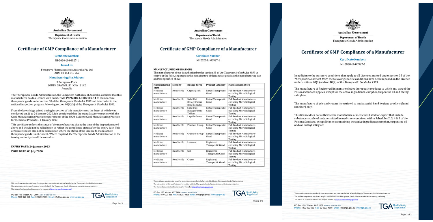 Sản phẩm của Vitatree đạt được chứng nhận chất lượng của tổ chức TGA thuộc Bộ y tế Úc