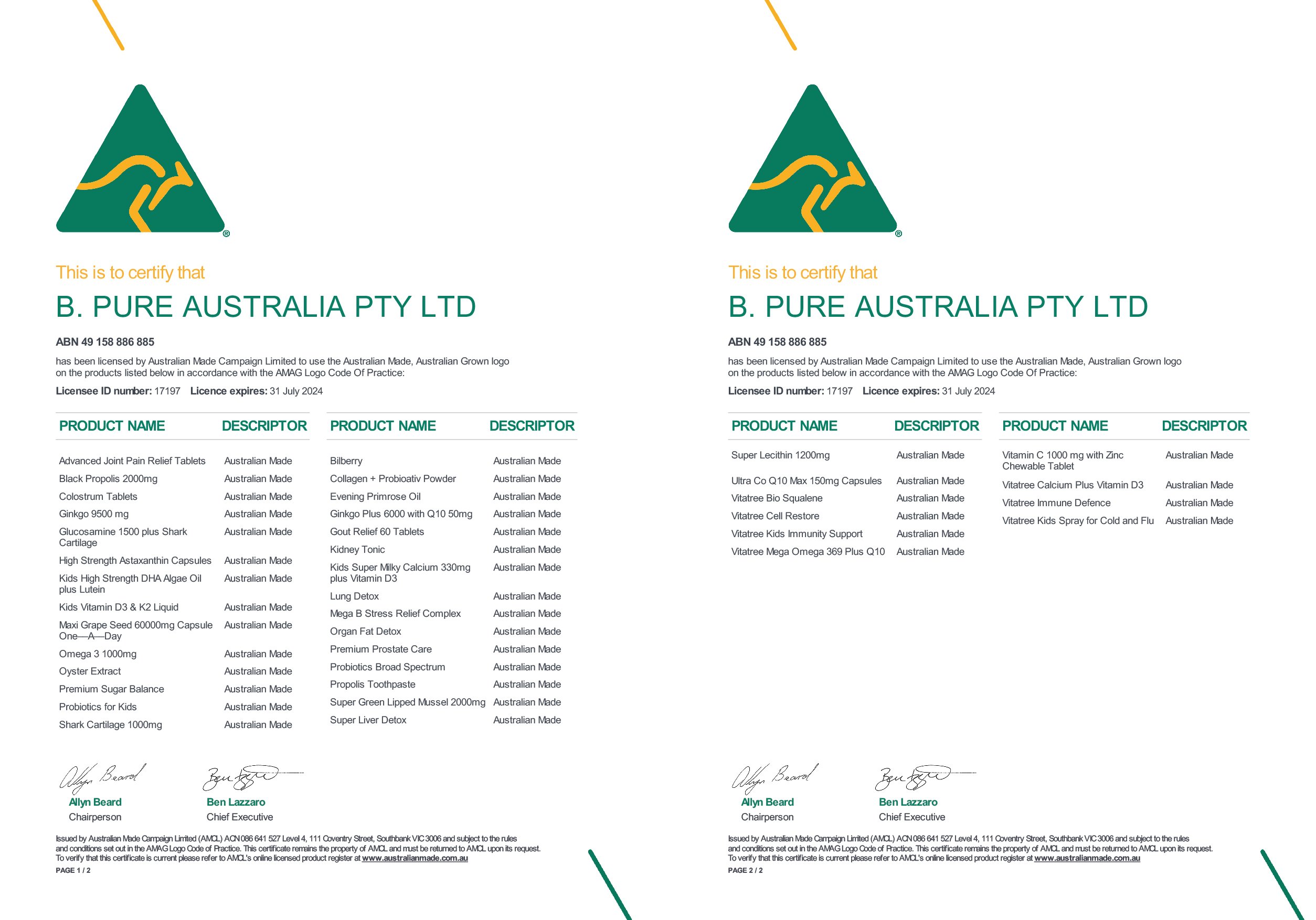 Sản phẩm Vitatree nhận được chứng nhận Australian Made. Các sản phẩm được cấp phép và chứng nhận Australian Made chỉ khi đã được kiểm định và chứng minh toàn bộ từ nguồn nguyên liệu tới quá trình sản xuất đóng gói 100% được thực hiện ở Úc
