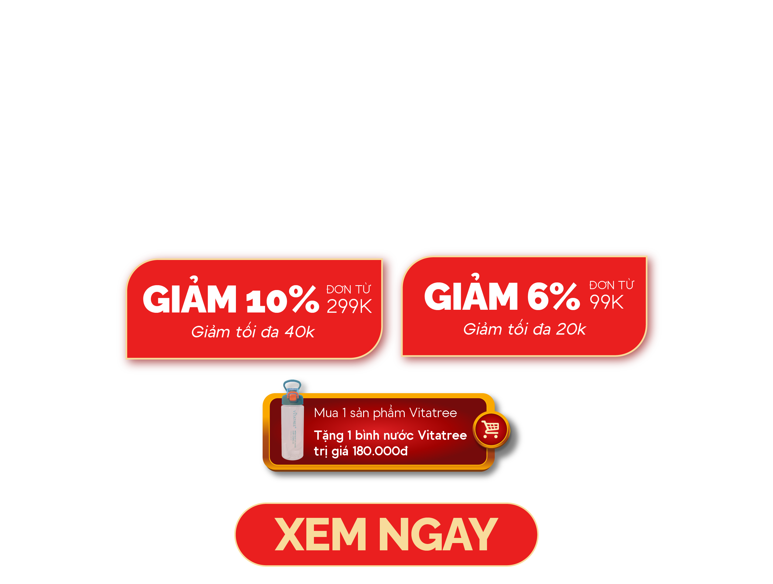 ĐẶC BIỆT, HIỆN NAY VITATREE ĐÃ CÓ GIAN HÀNG CHÍNH HÃNG TRÊN LAZADA, NẾU NHƯ BẠN MUỐN CÓ THÊM NHIỀU LỰA CHỌN HƠN CHO HỘP QUÀ SỨC KHOẺ CỦA RIÊNG MÌNH CÓ THỂ CHỚP CÁC DEAL GIẢM GIÁ CỰC HỜI CHO TỪNG SẢN PHẨM CỦA NHÃN HÀNG NGAY TẠI ĐÂY: